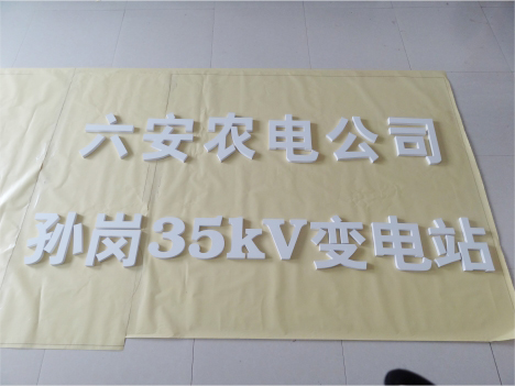 變電站標志工藝:按國家電網VI標準將標志做成球形分塊模具;用樹脂材料注入模具摻入玻璃纖維,前后四層;毛胚標志開模后進行粗磨修形,精磨后進行底漆、面漆4遍的打磨噴白色漆高溫爐烤后,單塊內包裝,整體標志獨立裝箱;中間內圓與圈外中英文分開,標志周邊小字、大字和英文字都用PVC雕刻再噴國網綠漆,底板采用鋁塑板;具有高強度,耐高溫,不變形,使用年限長等特點。