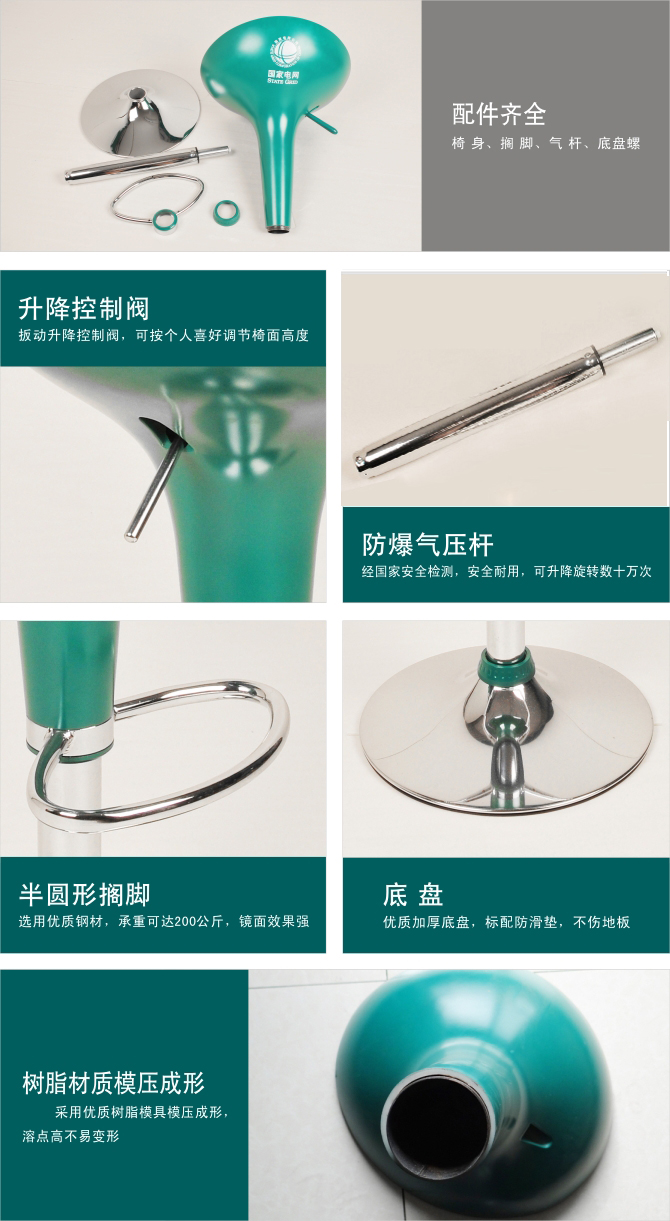 椅身采用鋼制氣動桿,可自由升降,其結構系根據人體曲線設計,舒適感強;色彩艷麗造型美絲觀,表面光滑,永不褪色、耐腐蝕、抗老化、堅固耐用、可塑性強。
