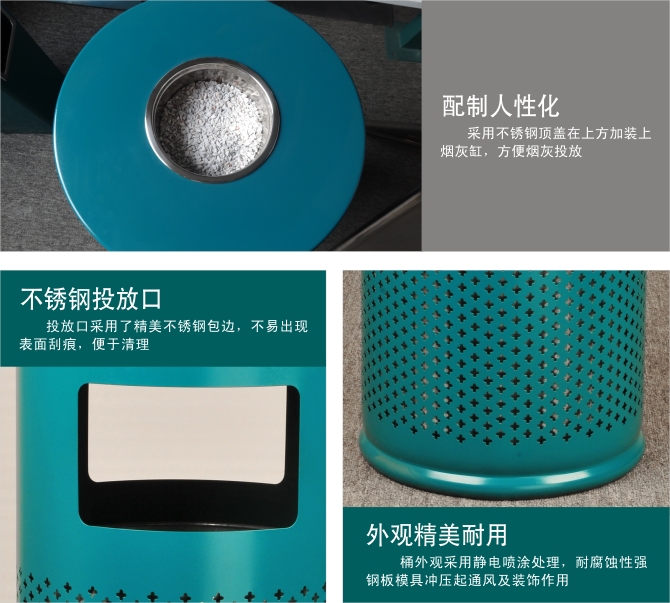1、采用不銹鋼頂蓋在上方加裝上煙灰缸,方便煙灰投放。