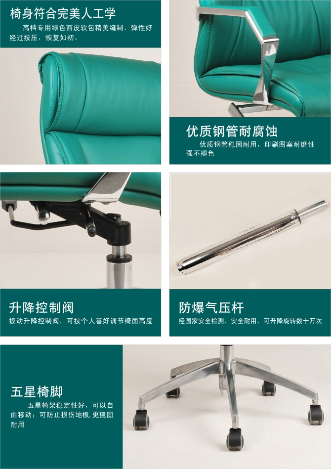 3、椅身靠背符合人體工程學,結合身體結構,制件流線線條,可升降,可下趟可轉動,可前后調前,符全人體需要。