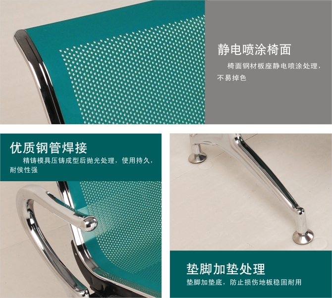 1、椅面鋼材板座靜電噴涂處理,不易掉色