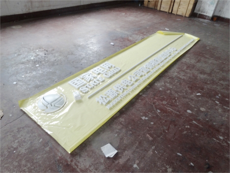 會議室背景墻安裝案例:按國家電網VI標準將標志做成球形分塊模具;用樹脂材料注入模具摻入玻璃纖維,前后四層;毛胚標志開模后進行粗磨修形,精磨后進行底漆、面漆4遍的打磨噴白色漆高溫爐烤后,單塊內包裝,整體標志獨立裝箱;中間內圓與圈外中英文分開,標志周邊小字、大字和英文字都用PVC結皮板雕刻再噴國網綠漆,底板采用鋁塑板;具有高強度,耐高溫,不變形,使用年限長等特點。