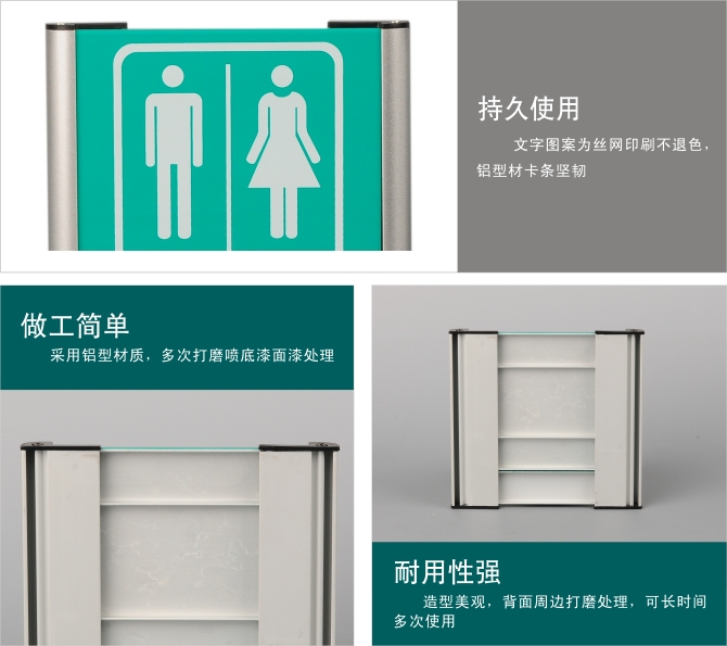 特點:鋁形材表面打磨處理后噴底漆和面漆,絲印內(nèi)容后再在表面上再噴一層透明清漆,作工精細(xì)能夠保護(hù)絲印的內(nèi)容不受磨損。科室牌又分平面和弧面。
